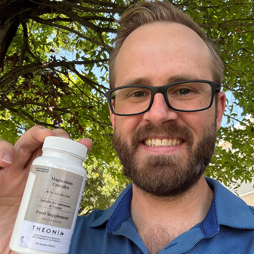 "A minha esposa e eu recebemos a recomendação do nosso médico para começar a tomar um suplemento de Magnésio e encontramos a Theonia. A nossa encomenda foi entregue prontamente e recebemos generosamente um desconto ao finalizar a compra. Até agora, o Complexo de Magnésio tem sido excelente e tivemos uma ótima experiência como novos clientes. Certamente voltaremos para mais."